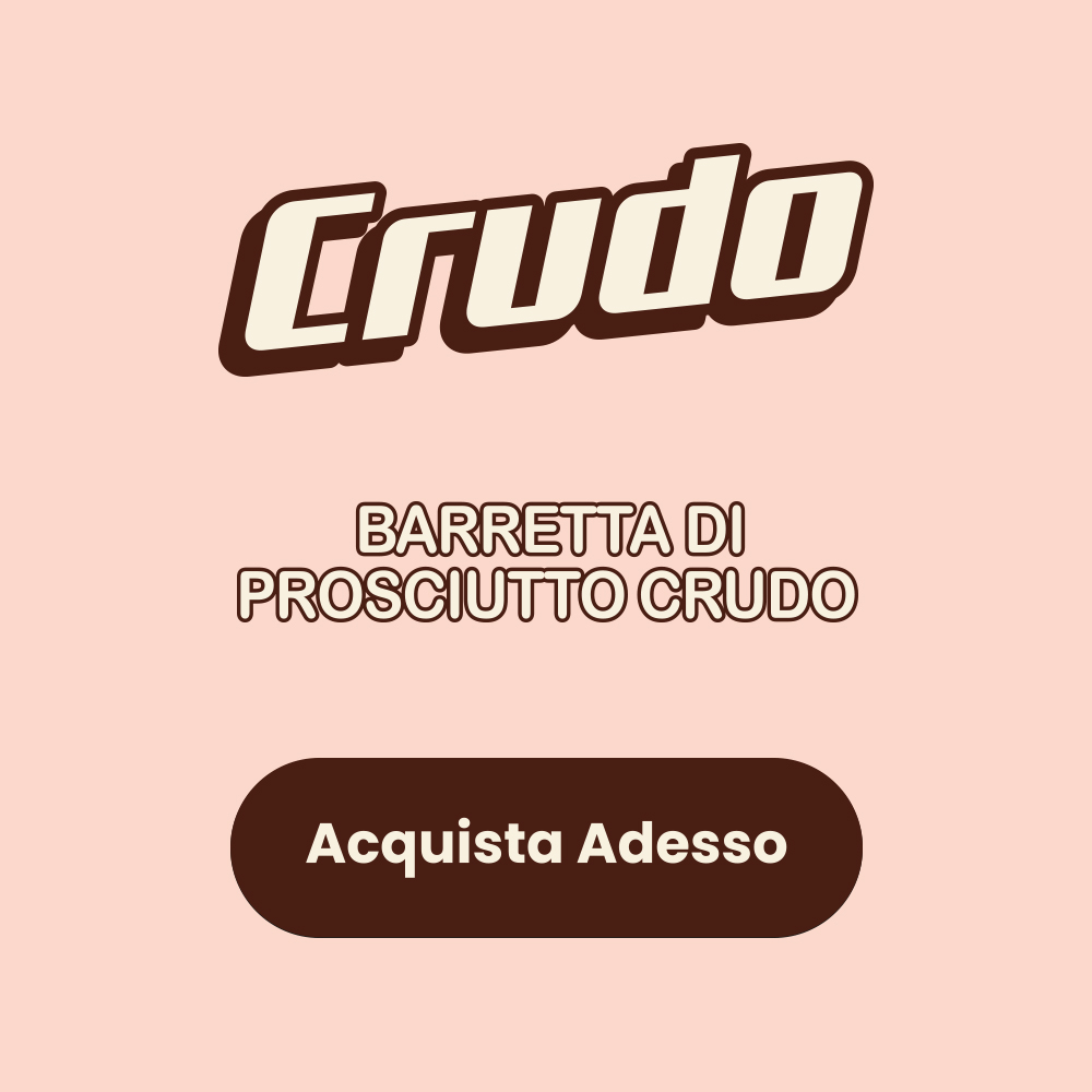 Sua maestà il Prosciutto Crudo, una delle eccellenze della tradizione italiana più apprezzata e riconosciuta nel mondo, nel nuovissimo formato tascabile delle salumette. La barretta salata dolce e delicata, ideale per soddisfare la tua voglia di qualcosa di buono. Finalmente la barretta salata diverse da tutte le altre! La salumetta... il salume in barretta!