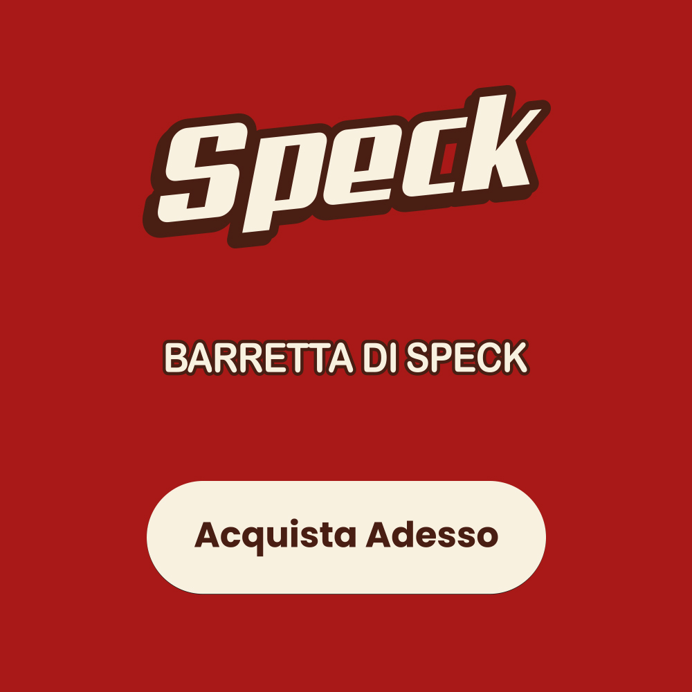 Tutto il sapore dello Speck racchiuso in una morbida e gustosa barretta. Un nuovo formato tascabile per poter portare dove vuoi il gusto del più pregiato salume dell’Alto Adige. Una sfiziosa compagna per i tuoi spuntini, un concentrato di energia e proteine da tenere sempre con te! Finalmente la barretta salata diverse da tutte le altre! La salumetta... il salume in barretta!